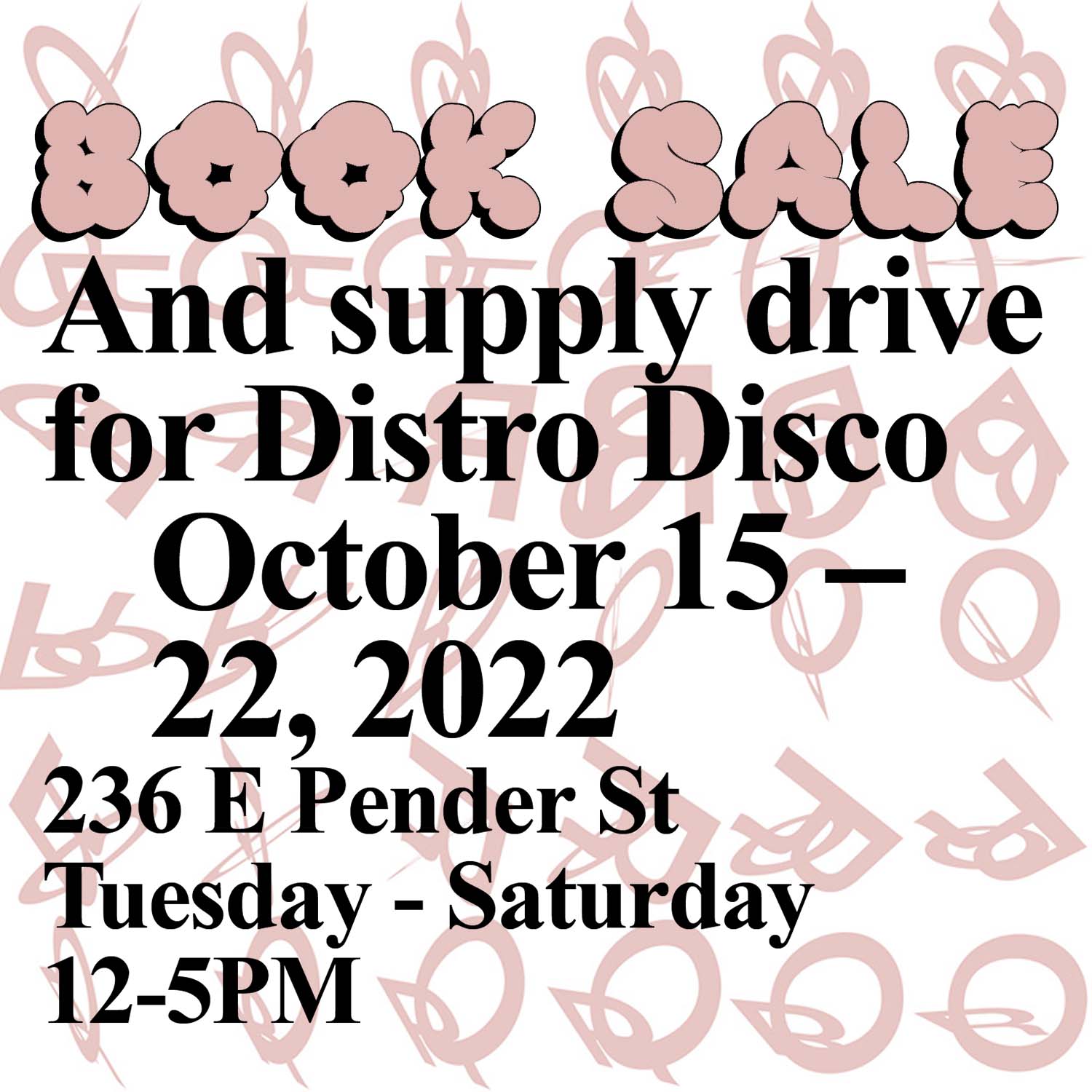 You are invited to Or Gallery’s 2022 booksale from October 15th-22nd at our 236 E Pender Street storefront—this sale will include clearance prices on older stock, including periodicals, zines, catalogues, vinyl records & so much more!