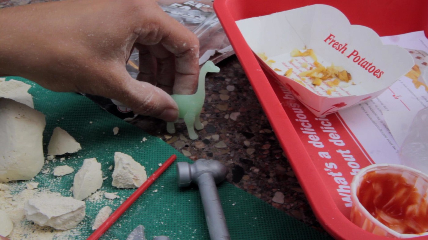 This Unwieldy Object is a research drama and personal investigation into the colonial myth of the dinosaur by Berlin-based artist, writer and filmmaker Anna Zett. On a road trip through the dusty heart of the USA, a researcher intends to make physical contact with a phantasy, traversing a mythical non-place between East and West, masculine and feminine, material and projection, past and future. Meetings with various paleontologists, fossil hunters, sculptors, and scientists on both sides of the American Frontier trace diverse interpretations of the past. Narratives of natural history and progress intermingle and digress as the reconstructed bodies of dinosaurs become less and less comical in the background of the brutal history of European settlement in indigenous territories. The story ends in the middle, in Rapid City, South Dakota, at the foot of an imported Berlin Wall fragment from the researcher’s home country, but the journey continues.