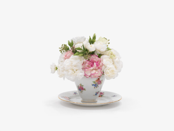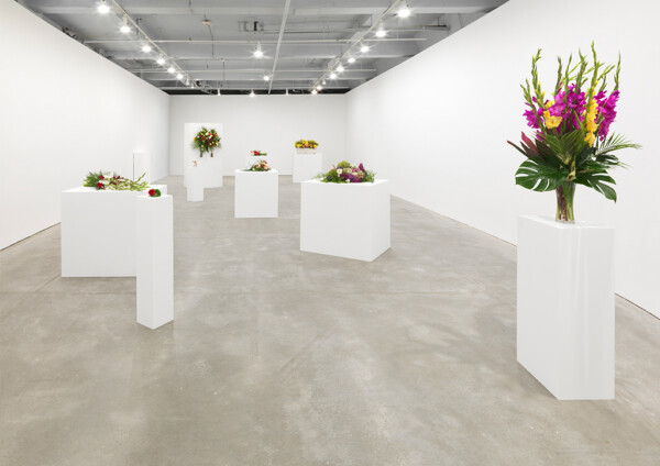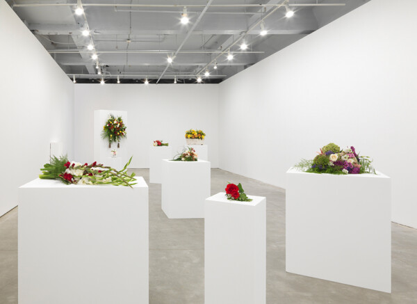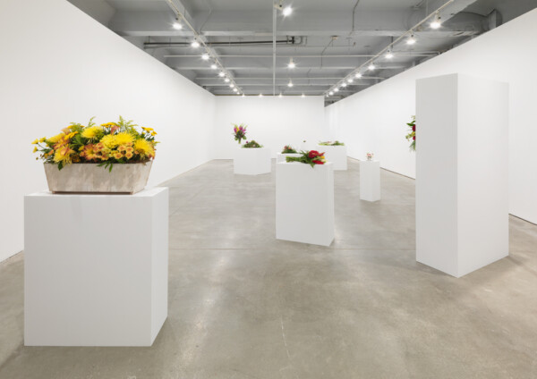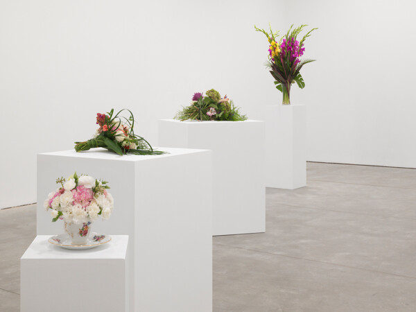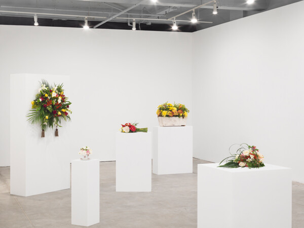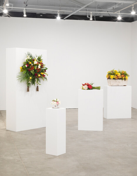 Kiwanga then takes these images to a local florist in order to recreate the bouquets as closely as possible to the archival images. The fresh arrangements are displayed in a gallery and left to wilt over the duration of the exhibition, just as the memory of a celebratory moment might fade over time. Titled Flowers for Africa, Kiwanga’s series is a conceptual project that questions the material from which history is pictured and remembered. These artworks exist in the form of a protocol; they are recreated for each exhibition according to a set of detailed instructions, with differing results based on the interpretation by the florist.