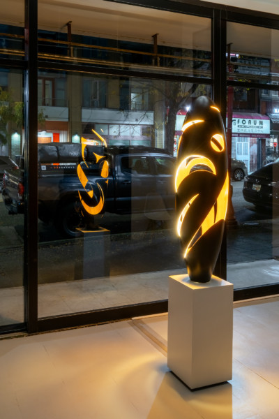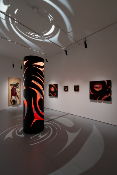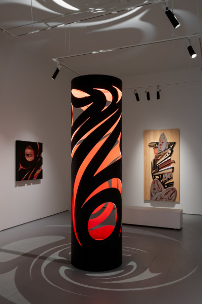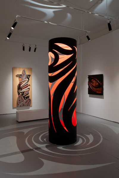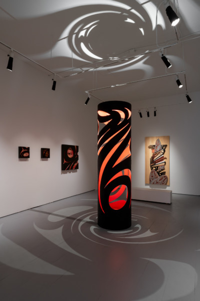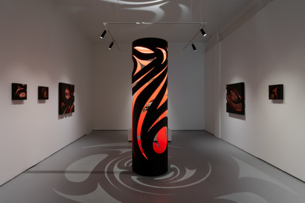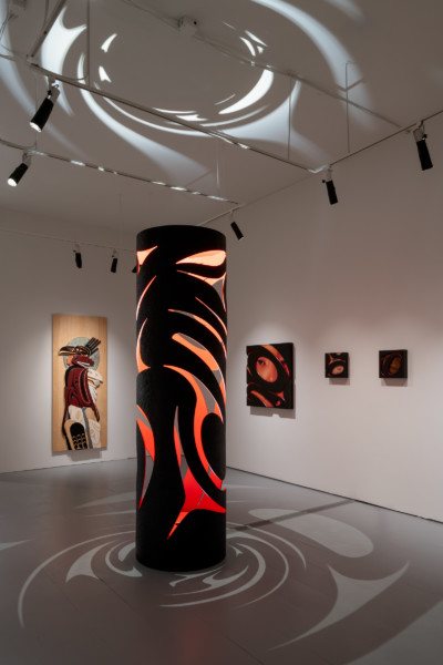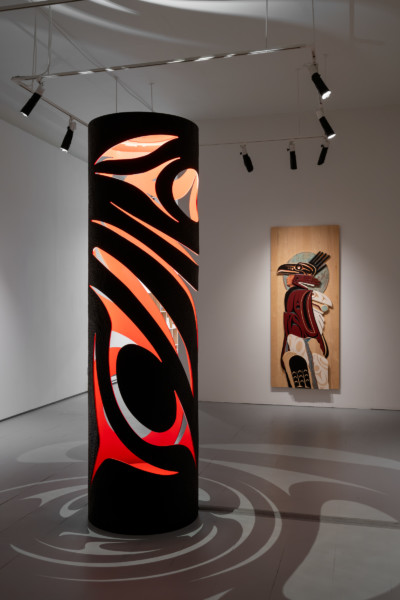 The newly commissioned sculptural works presented within The Seventh engage familial supports and knowledges, including Brevner’s Japanese and Trinidadian heritage and Harry’s ongoing commitment to sharing Sḵwx̱wú7mesh stories, forms, and designs. The exhibition pays homage to innovative material traditions while engaging experimentation through collaboration and cross-cultural exchange. From monumental public artwork to intimate portraiture, the multiple registers of scale and breadth of materials invite opportunities for diverse expression and experience. The Seventh will be the first public viewing of each artwork presented within the exhibition, and will include the activation of two large cedar carvings entitled Sna7m Sea (2023) and Sna7m Sky (2023).